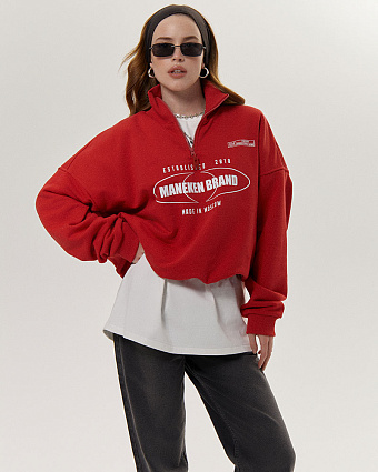Вдохновленный олимпийками свитшот имеет воротник-стойку с короткой молнией, которая позволяет регулировать уровень комфорта по погоде, добавляет спортивный акцент и современный стиль.