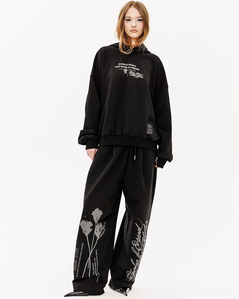 Принты выполнены в технике шелкография с эффектом Puff — текстура мягкая, объёмная, почти живая: каждая деталь вещи построена не только на линиях, но и на ощущениях.