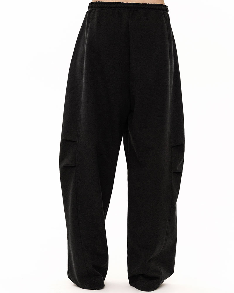 Вертикальные складки от пояса стремятся вниз, визуально вытягивая фигуру, будто ткань рисует линии. Передние складки на уровне колен — не деталь, а акцент, который ломает ожидания.