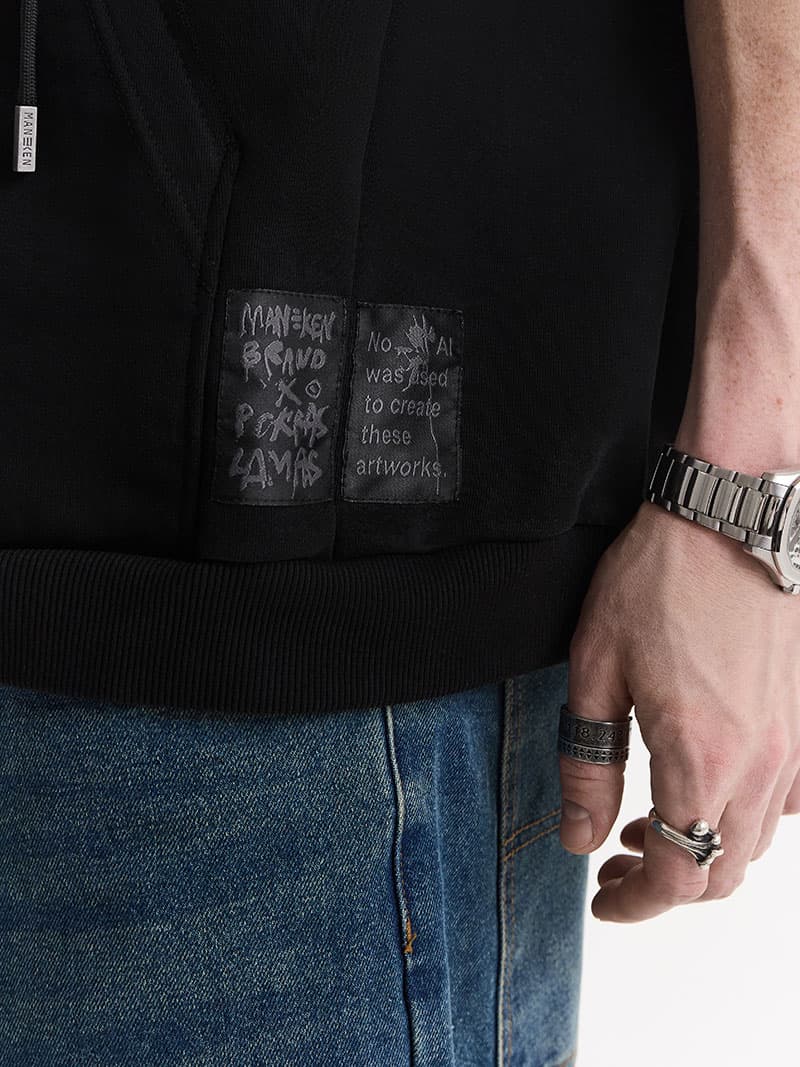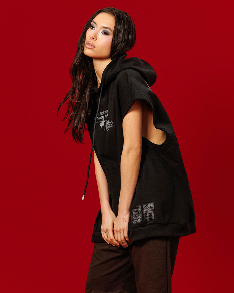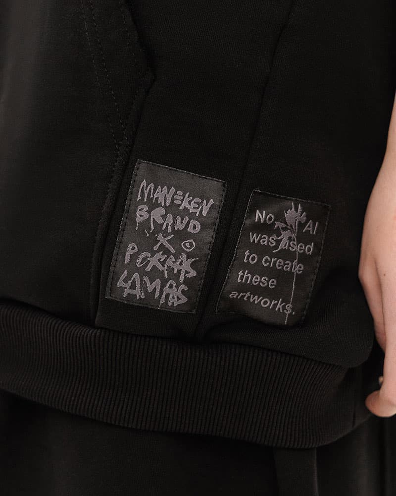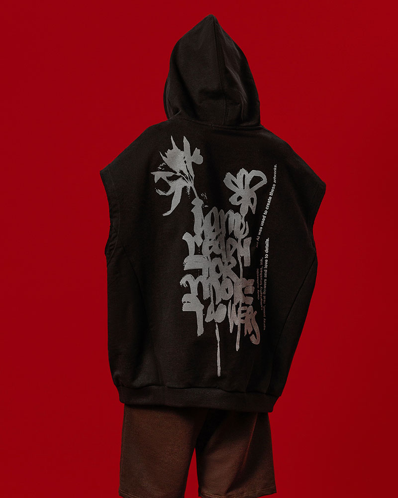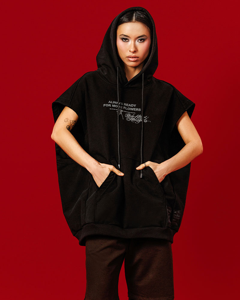 Худи-жилет с капюшоном — футуристичный арт рукотворного искусства, созданный в коллаборации POKRAS LAMPAS ╳ MANEKEN BRAND под названием ALWAYS READY FOR MORE FLOWERS.