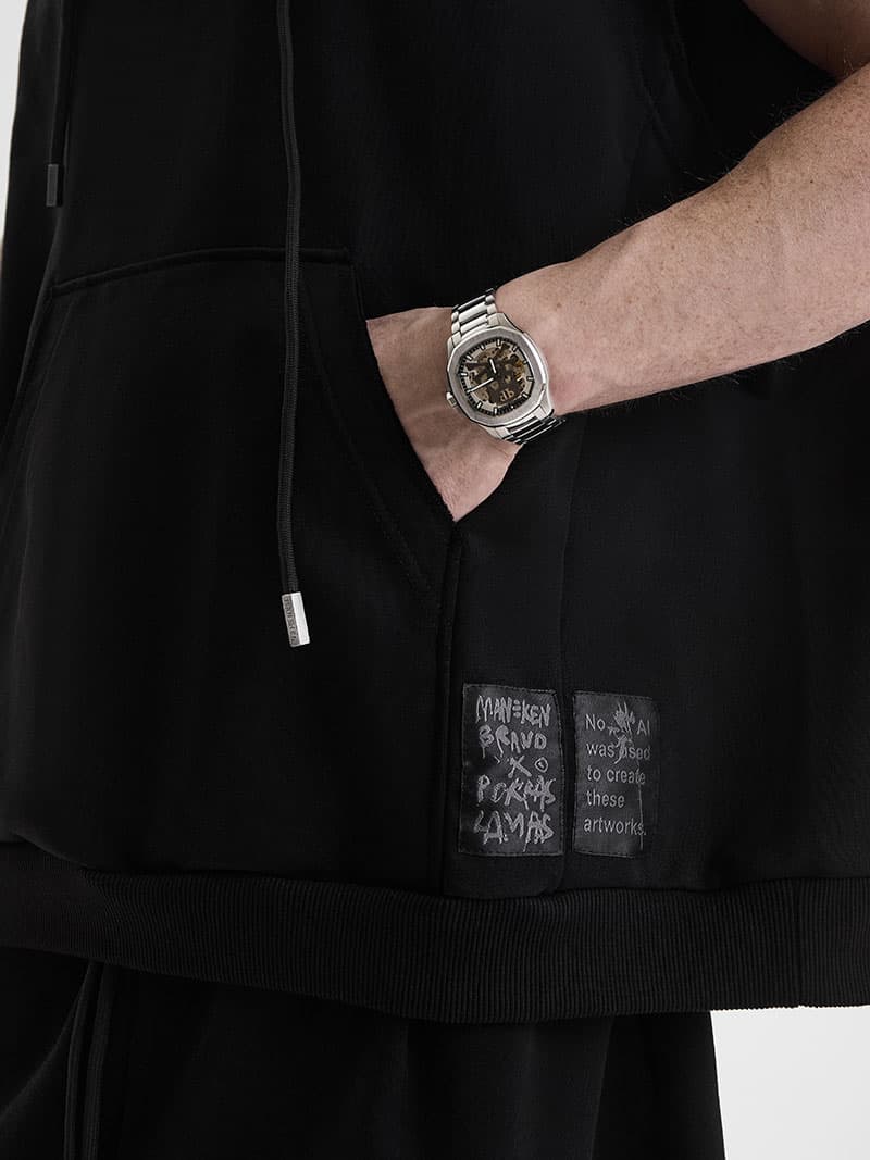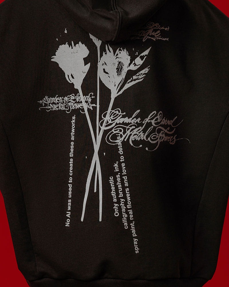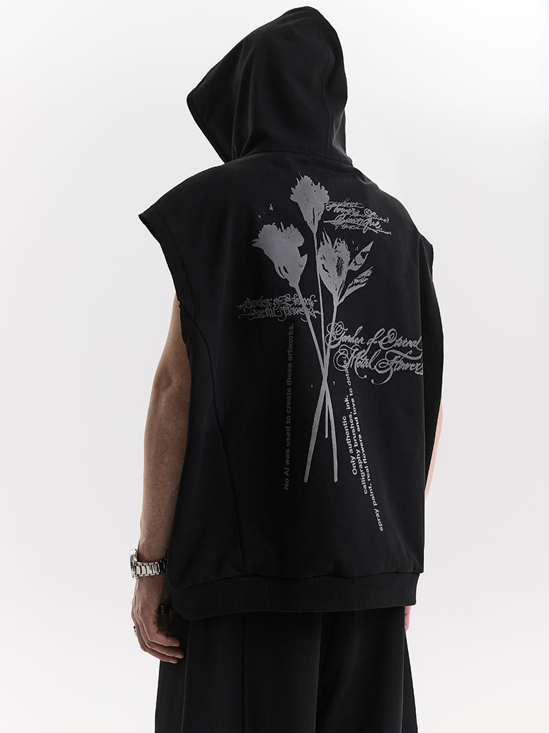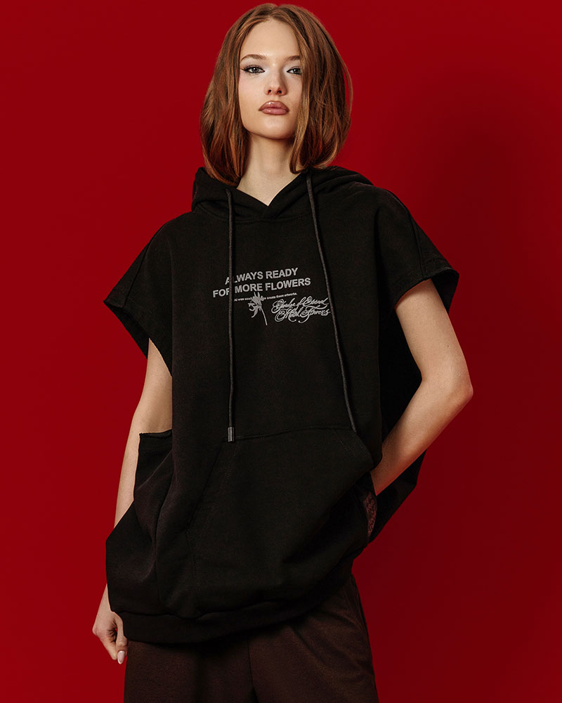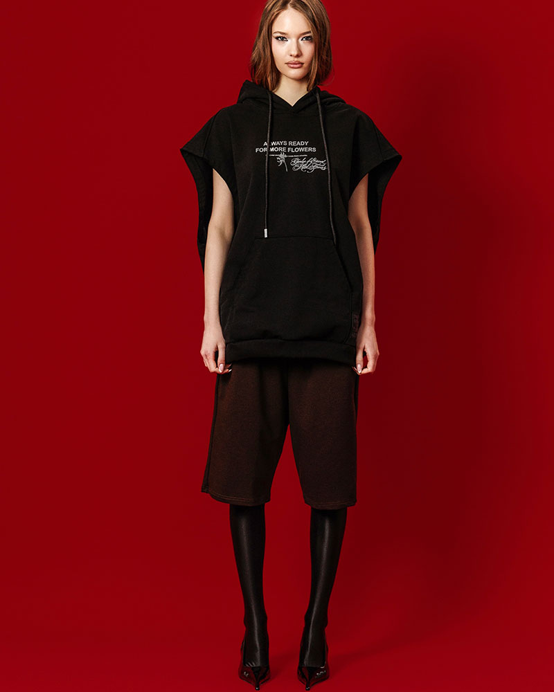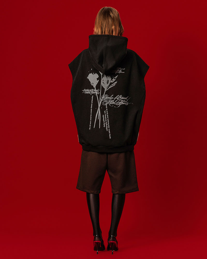 Худи-жилет с капюшоном —футуристичный арт рукотворного искусства, созданный в коллаборации POKRAS LAMPAS ╳ MANEKEN BRAND под названием ALWAYS READY FOR MORE FLOWERS.