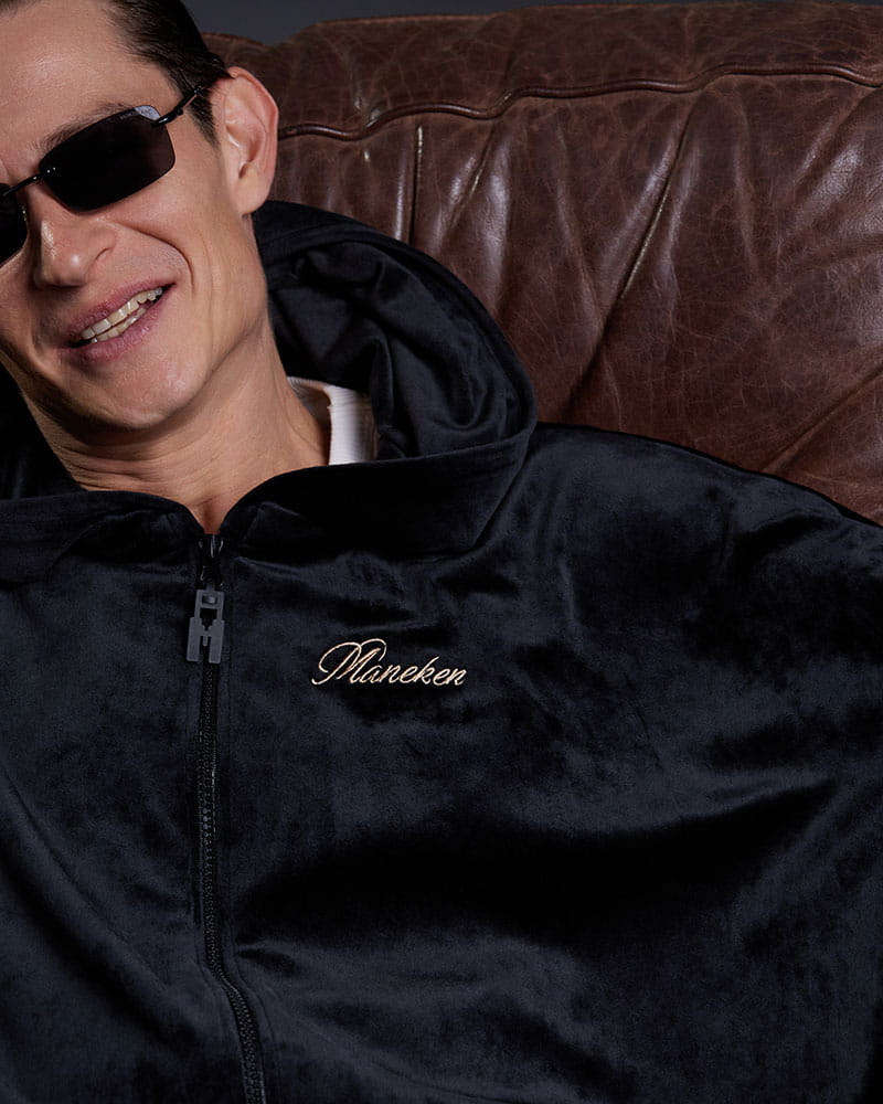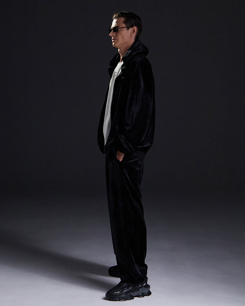 Современный мужской костюм из велюра, созданный в эксклюзивной коллаборации с рэп-исполнителем и автором песен Кравцем.