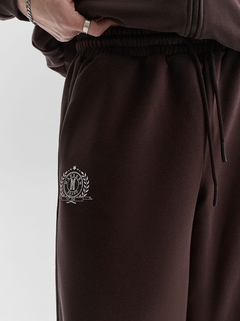 Боковые наклонные карманы. Сбоку у кармана расположен принт «герб» в стиле old money.