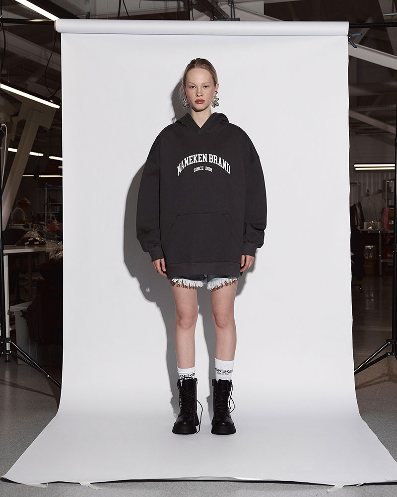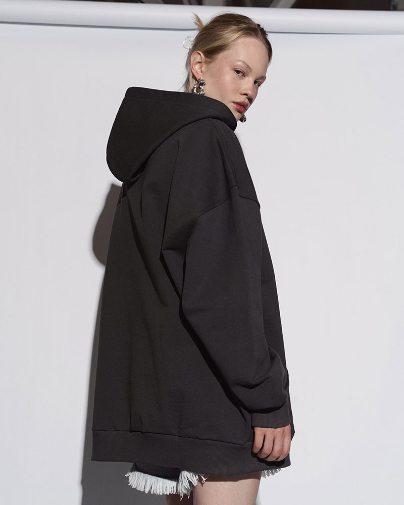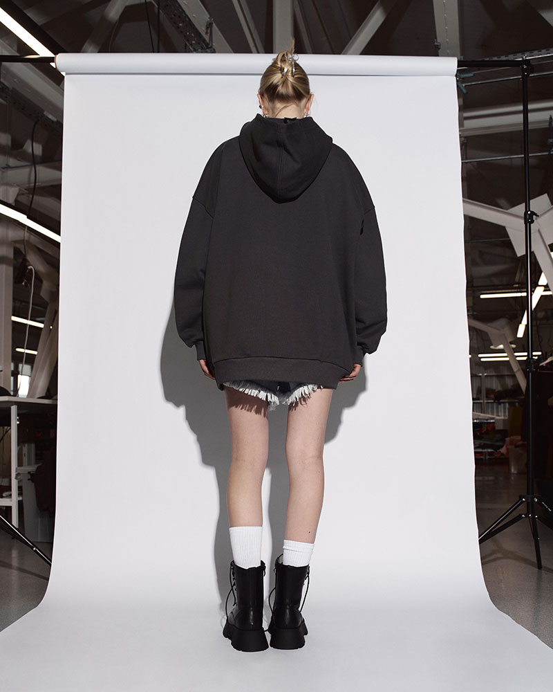 Уменьшили ширину манжет, чтобы посадка стала легче и аккуратнее, добавили строчку у горловины для более собранного вида, сделали карман-кенгуру деликатнее.