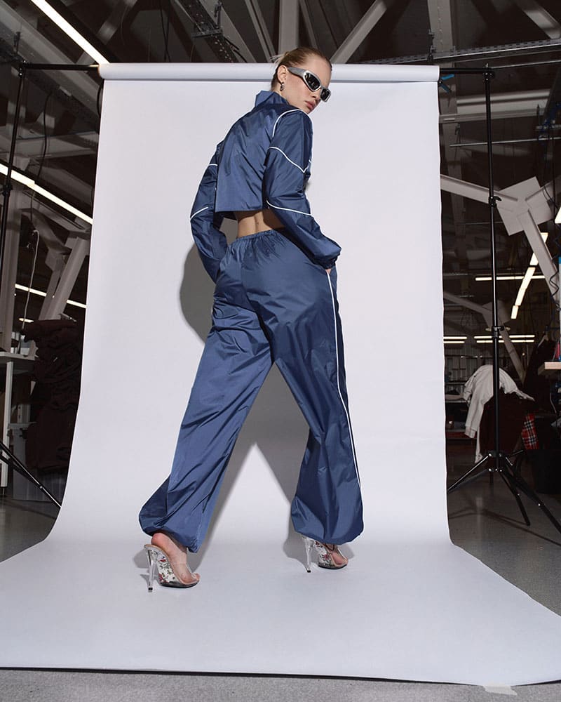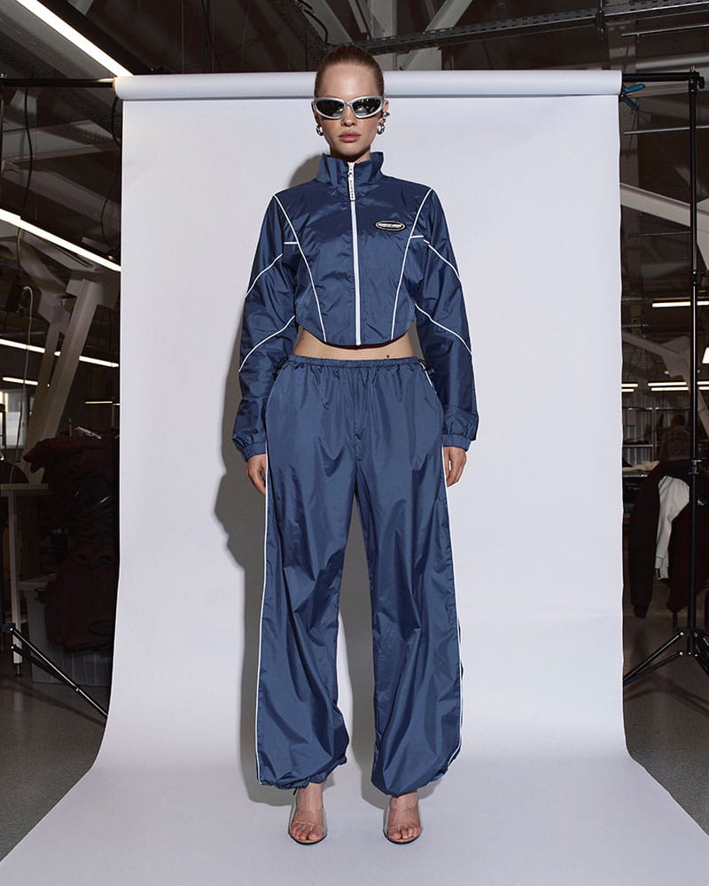 По всей ветровке в рельефах контрастный кант, подчеркивающий линии, которые визуально делают фигуру стройной.