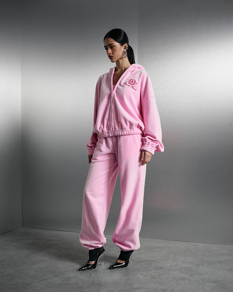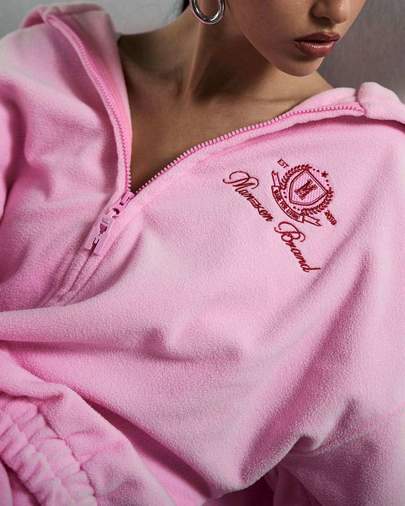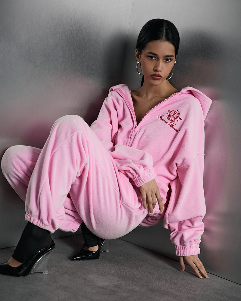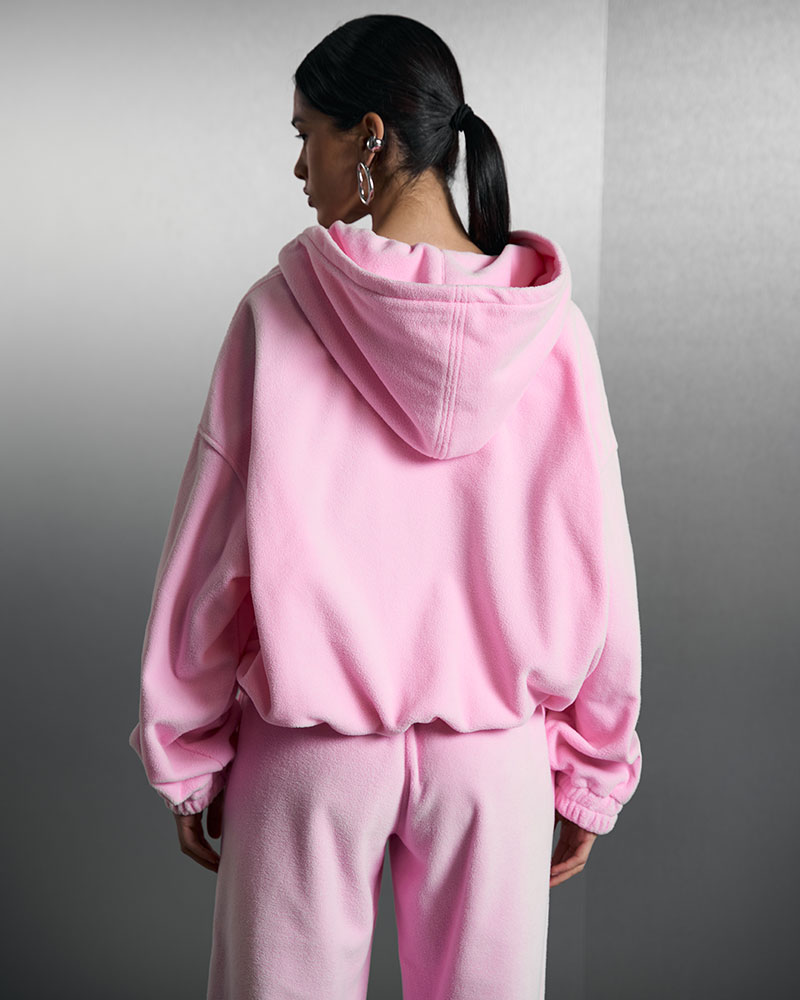 Изготовлен из плюшевой ткани с небольшим плотным ворсом, он не только приятно ощущается на коже, но и выглядит стильно. Худи с застежкой на молнии и капюшоном сочетает в себе удобство и шик.