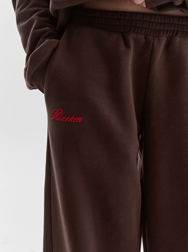 Брюки на низкой посадке с широкими брючинами. По низу имеются фиксаторы и тонкая резинка, что позволяет затягивать брючины и создавать удобный и комфортный образ в зависимости от настроения и желаемого силуэта.