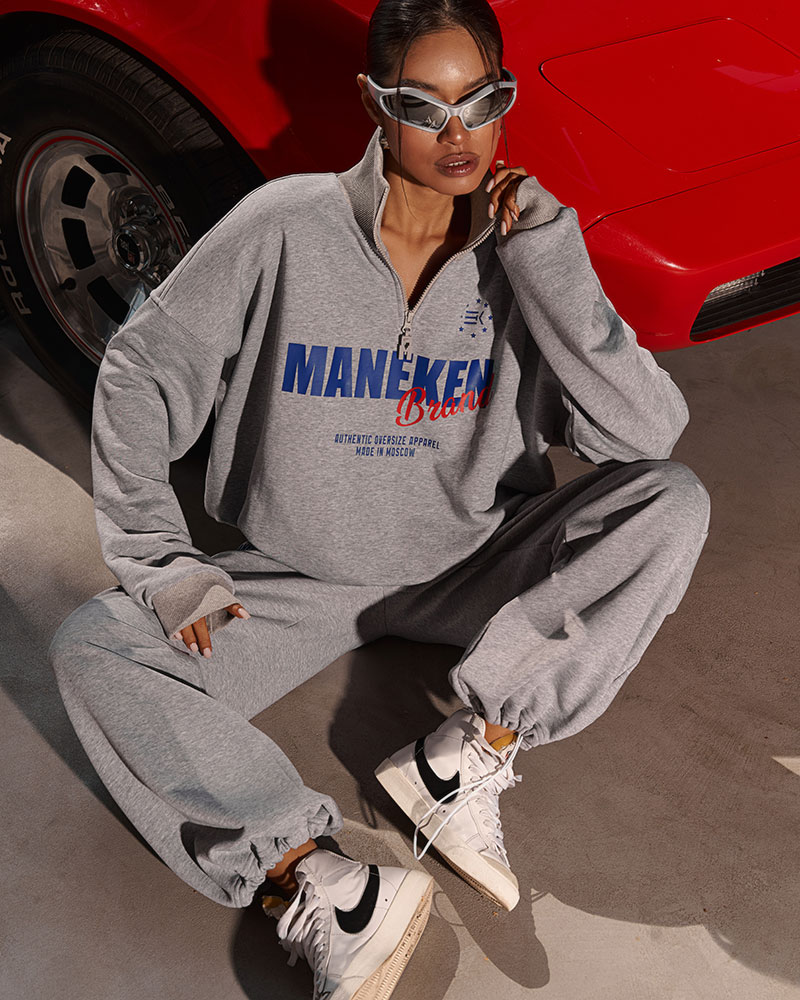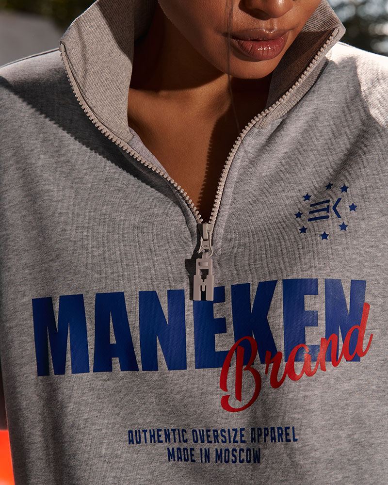 Вдохновленный олимпийками свитшот имеет воротник-стойку с короткой молнией, которая позволяет регулировать уровень комфорта по погоде, добавляет спортивный акцент и современный стиль.