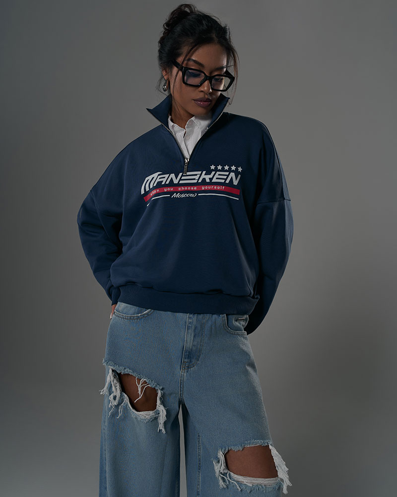 Классический тройер с воротником-стойкой на молнии — практичное решение, которое позволяет регулировать уровень комфорта в зависимости от погоды. Отличительной деталью тройера является ретро принт, отражающий гармоничное сочетание современности и стиля 70-х.