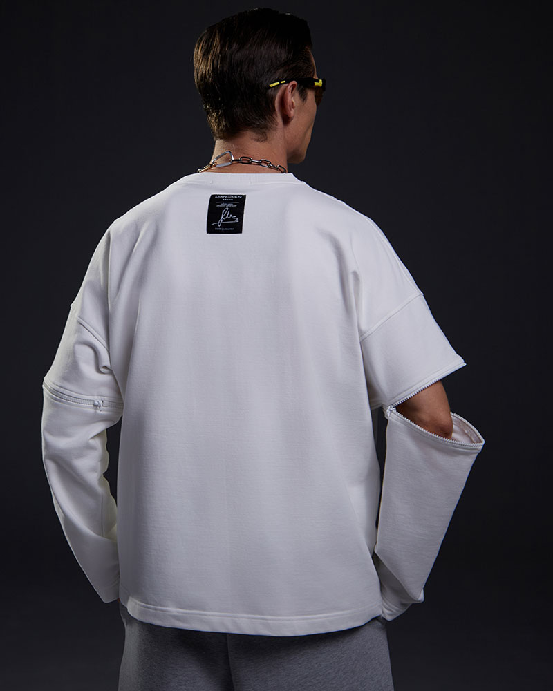 Инновационный лонглив трансформируется вместе с вашим настроением. Благодаря продуманной системе молний на рукавах, лонглив легко превращается в футболку за считанные секунды.