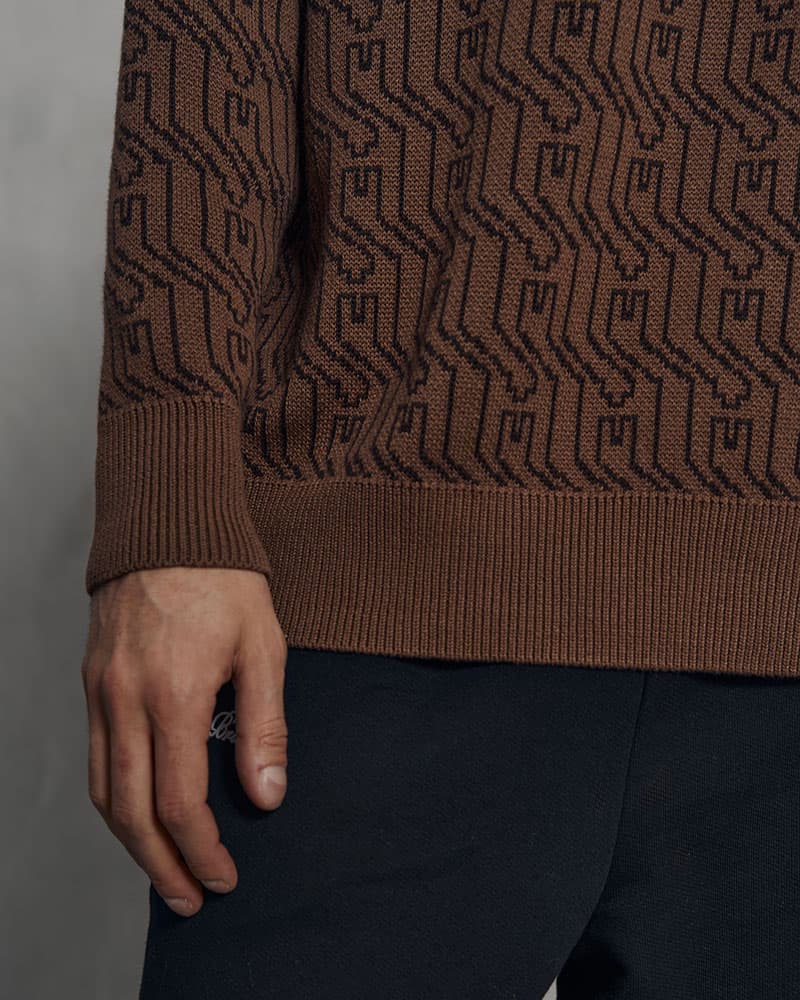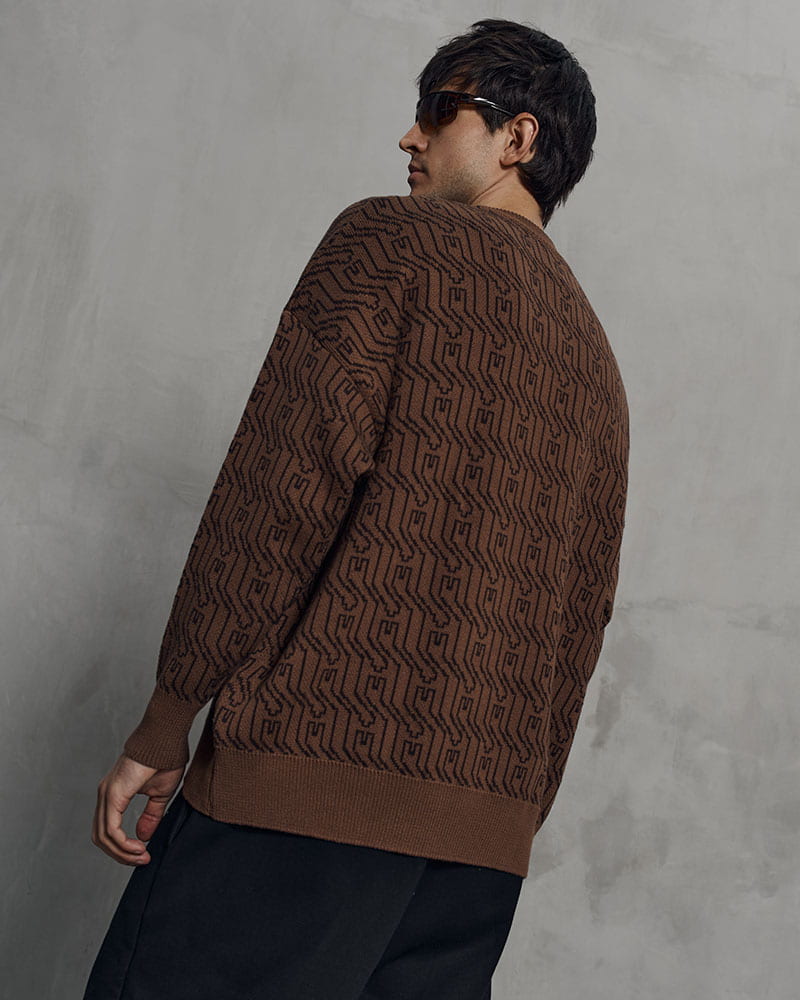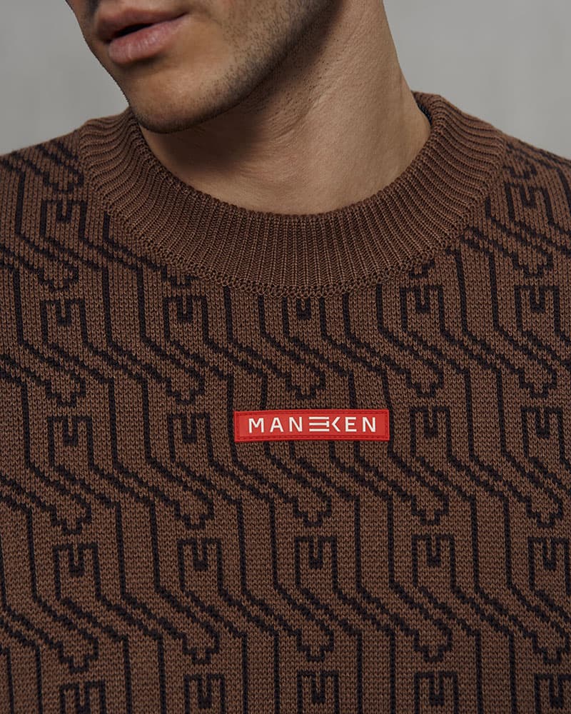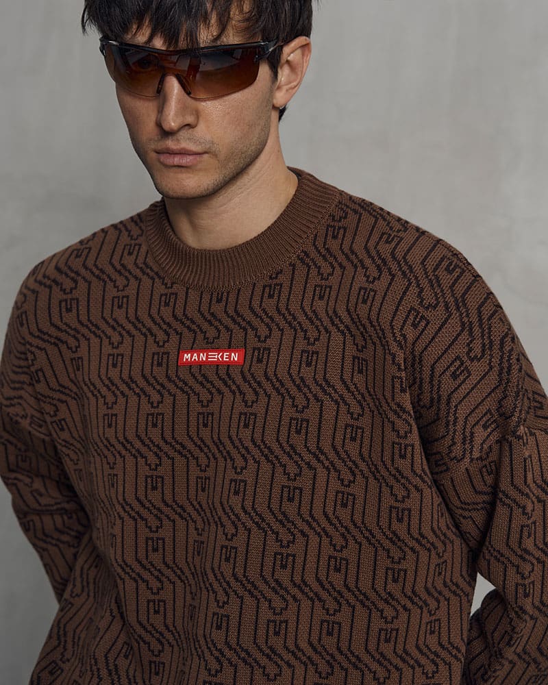 Оверсайз джемпер с уникальным паттерном, символом бренда в виде буквы «М». Выполнен в стилистике монохромной абстрактно-геометрической текстуры в духе кубизма.