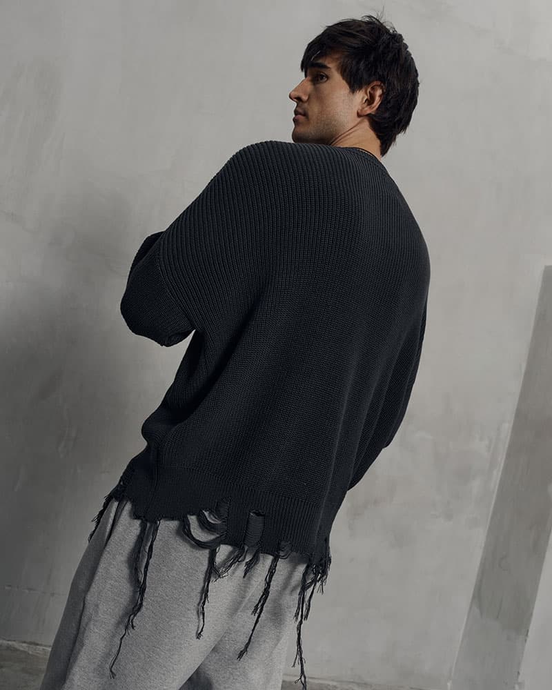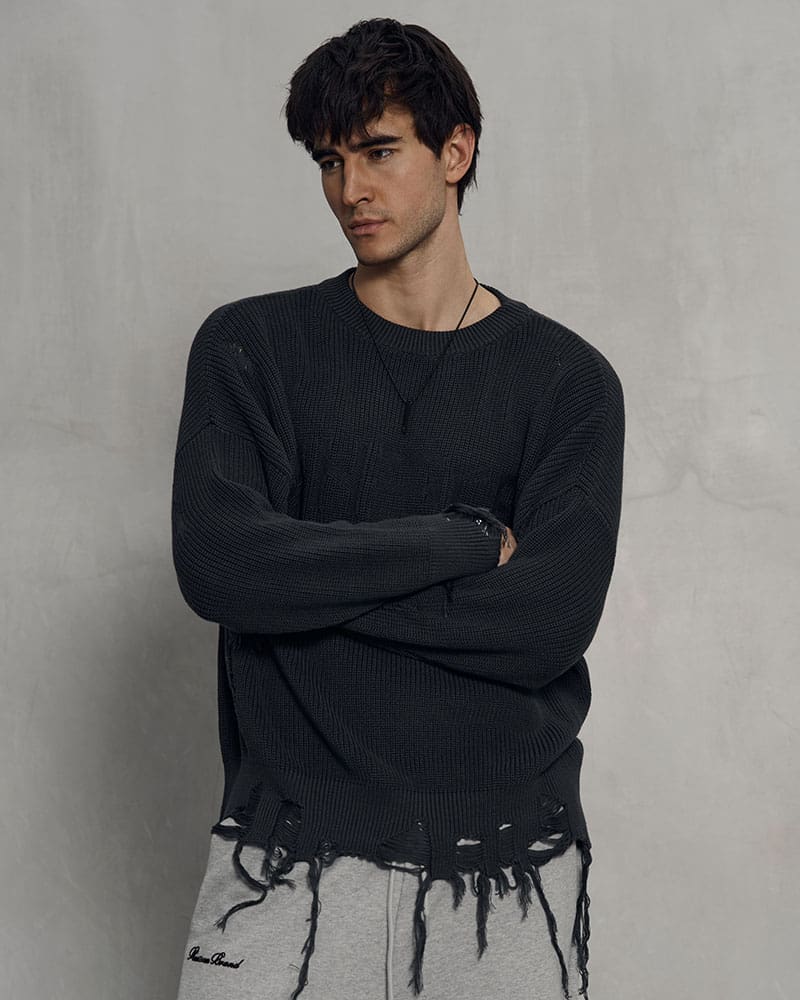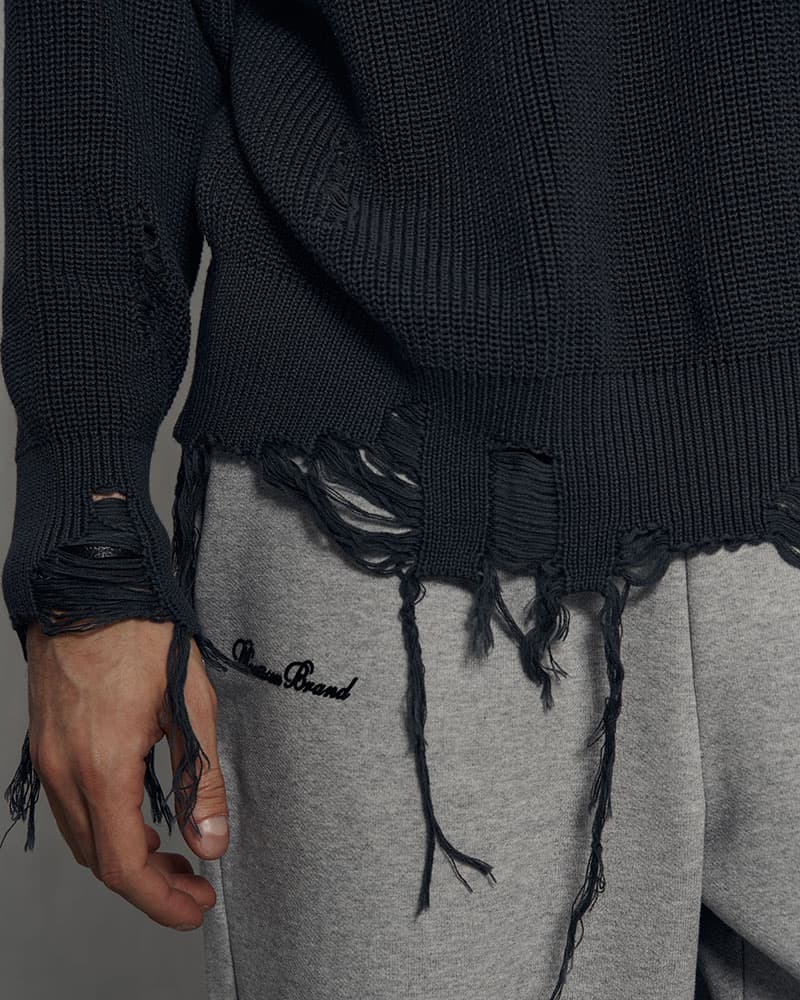 Фирменный вязаный свитшот в стиле «grunge» со спущенным плечом.