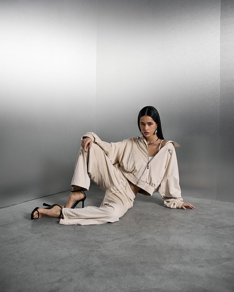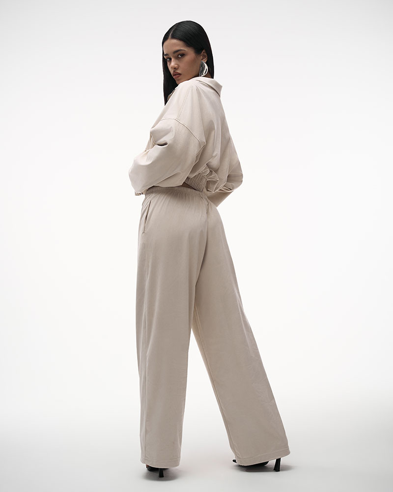 Брючины-трансформеры могут быть как прямые, так и затянутые по низу — благодаря фиксаторам вы легко настраиваете посадку под свой стиль. Завершает образ винтажная вышивка.