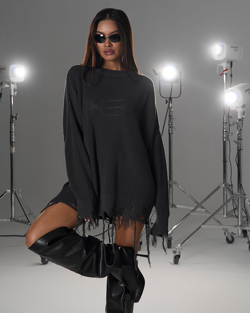 Фирменный вязаный свитшот в стиле «grunge» со спущенным плечом.