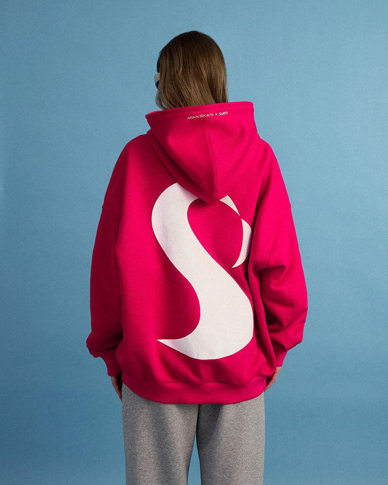 Худи изготовлен из мягкого хлопкового футера в сочном цвете подчеркивающий стиль коллаборации.