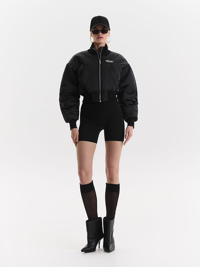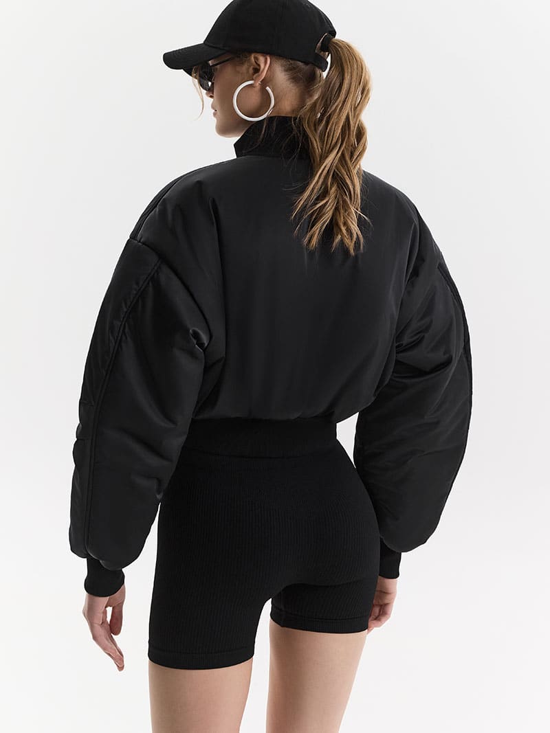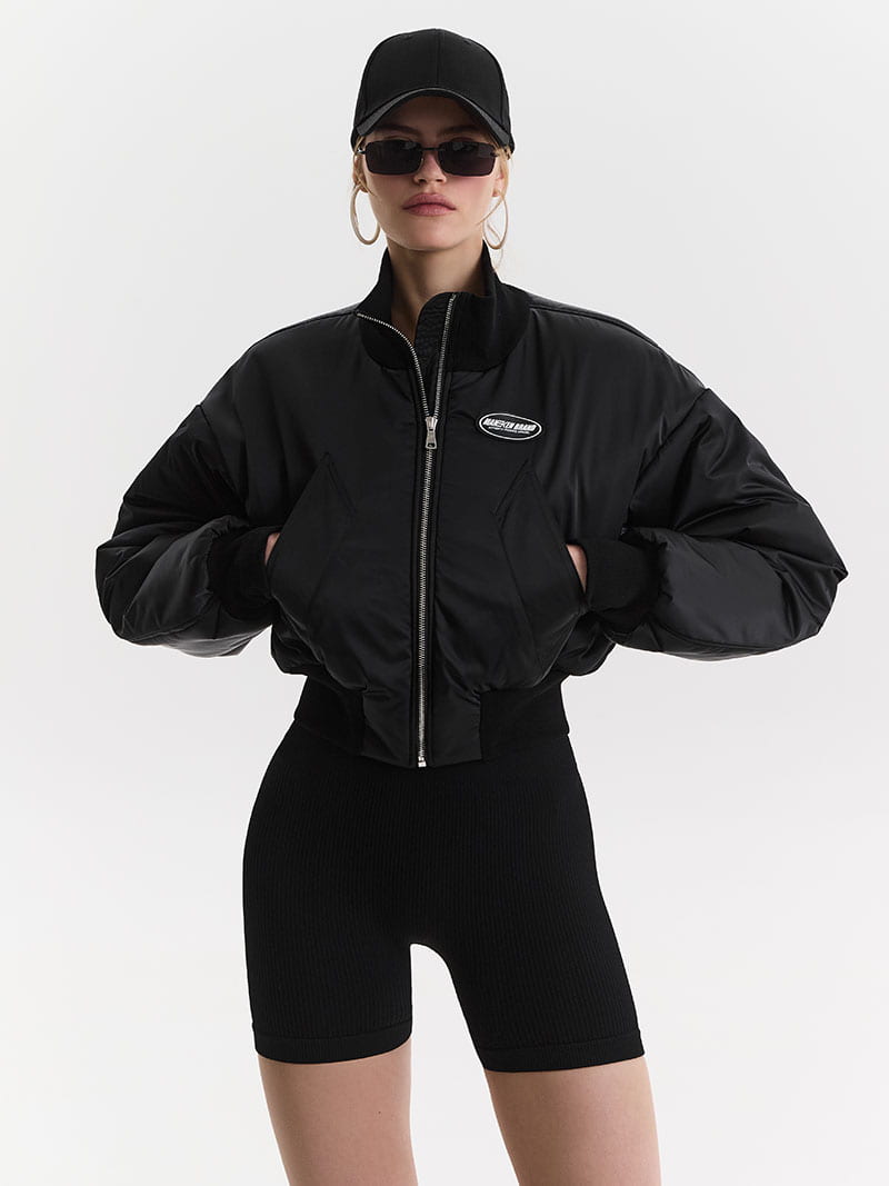 Укороченный бомбер с футуристичными карманами, который станет идеальным дополнением вашего весеннего гардероба!