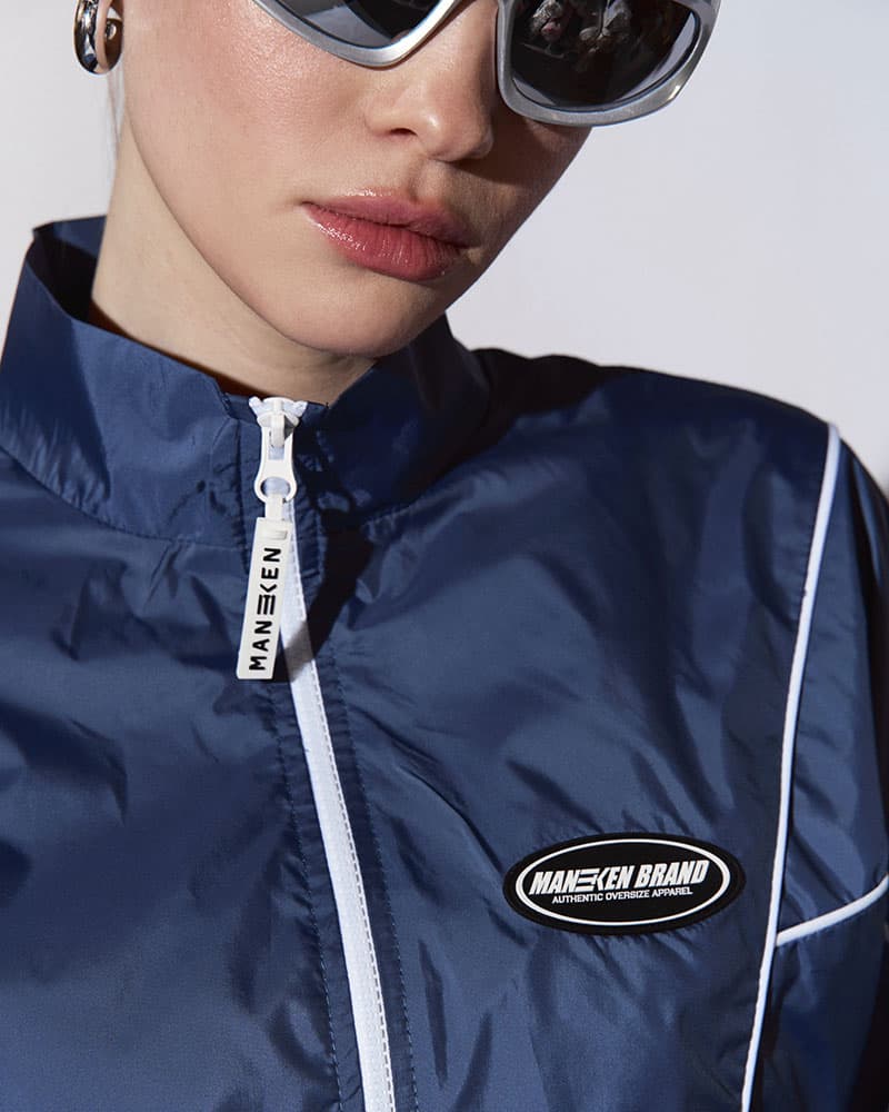 Состоит из укороченной ветровкой с фигурным низом, напоминающим корсет. Воротник мягкая стойка. Рукав «летучая мышь» с узкой манжетой на резинке.