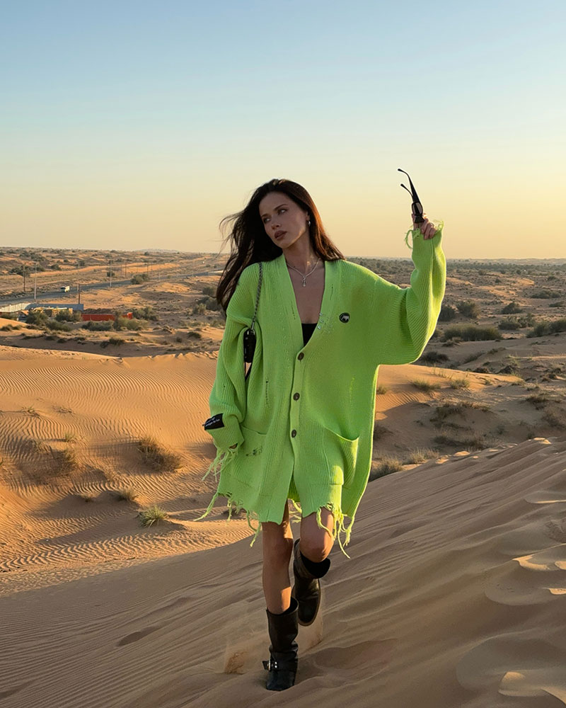 Кардиган oversize с эффектом гранж и булавками. Прорезиненный фигурный шеврон на груди с лого в стиле рок. На рукаве жаккардовая цензурная нашивка с булавкой.