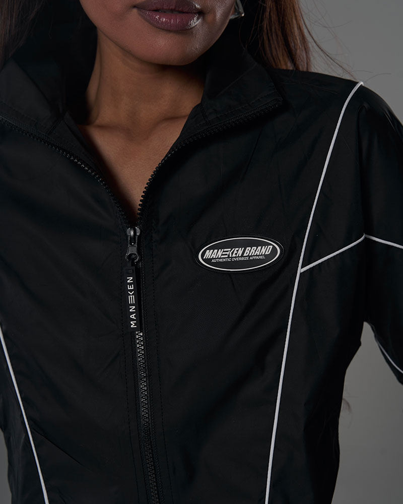 Состоит из укороченной ветровкой с фигурным низом, напоминающим корсет. Воротник мягкая стойка. Рукав «летучая мышь» с узкой манжетой на резинке.