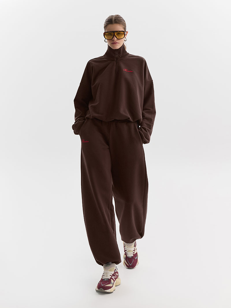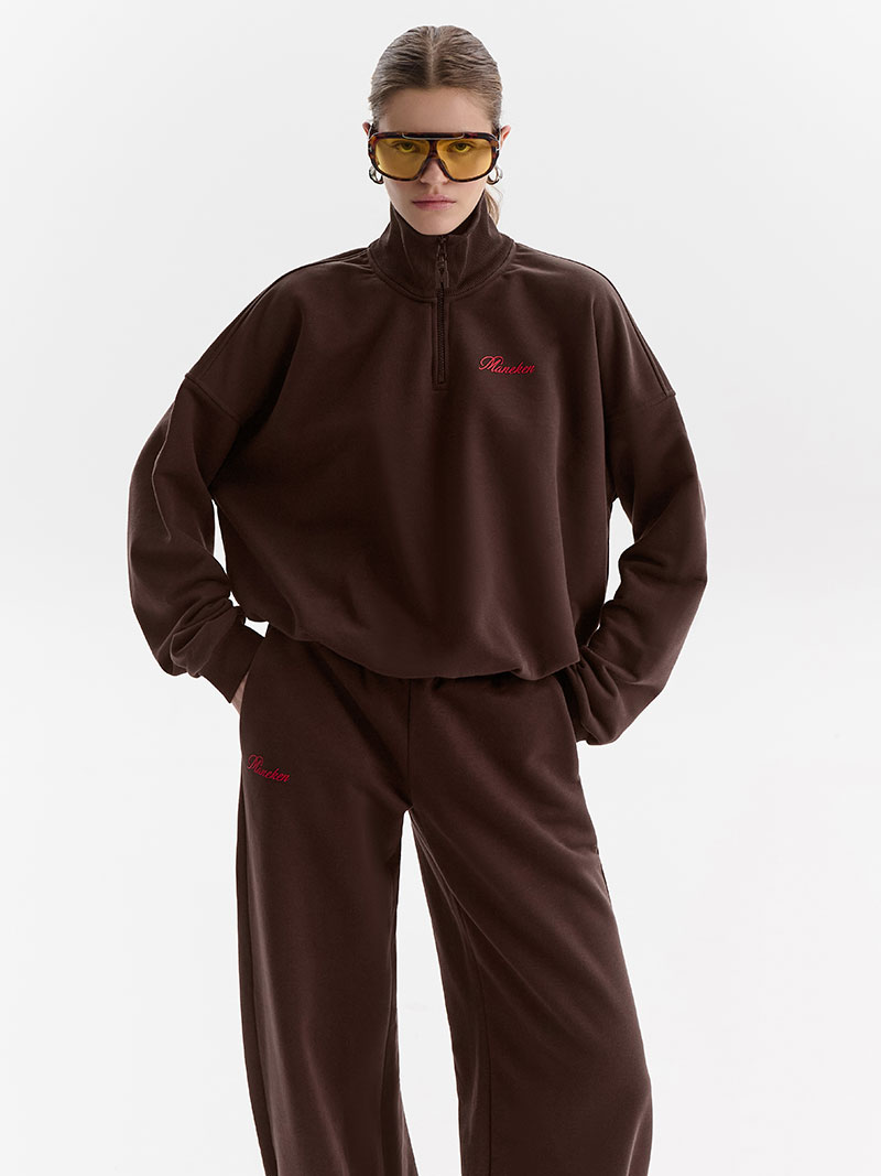 Вдохновленный олимпийками свитшот имеет воротник-стойку с короткой молнией, которая позволяет регулировать уровень комфорта по погоде, добавляет спортивный акцент и современный стиль. Завершает образ прорезиненный фирменный винтажный логотип.