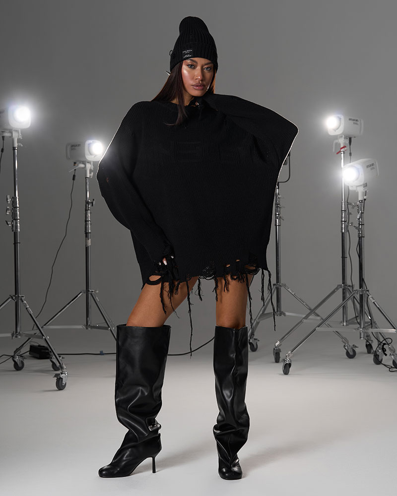 Фирменный вязаный свитшот в стиле «grunge» со спущенным плечом.