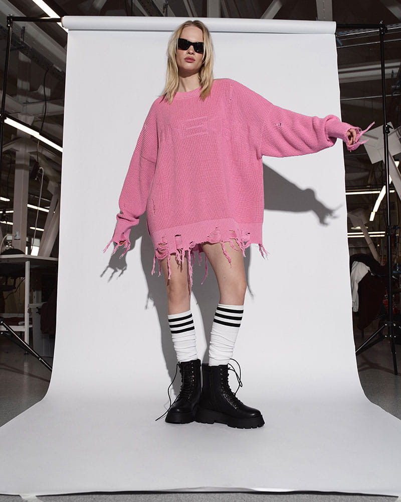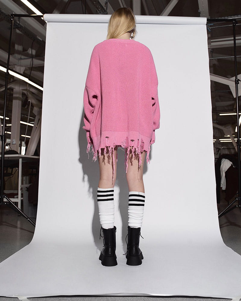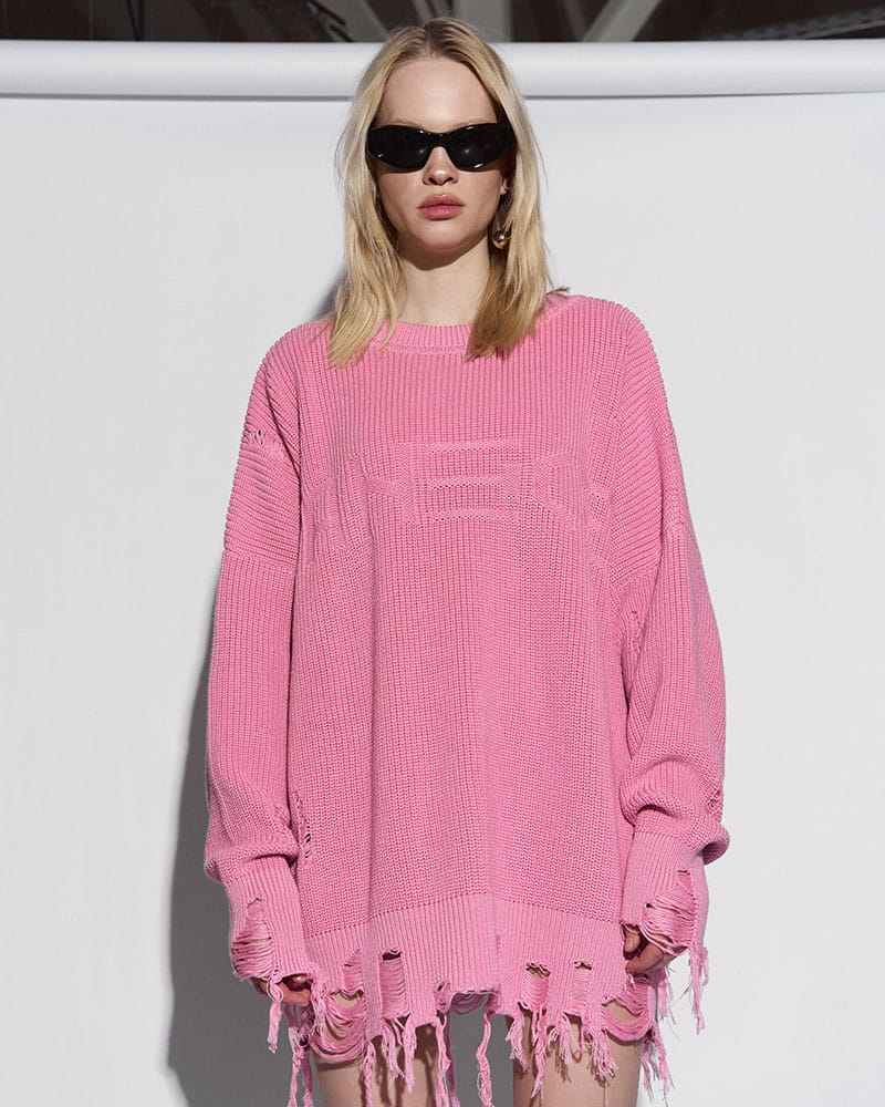 Фирменный вязаный свитшот в стиле «grunge» со спущенным плечом.